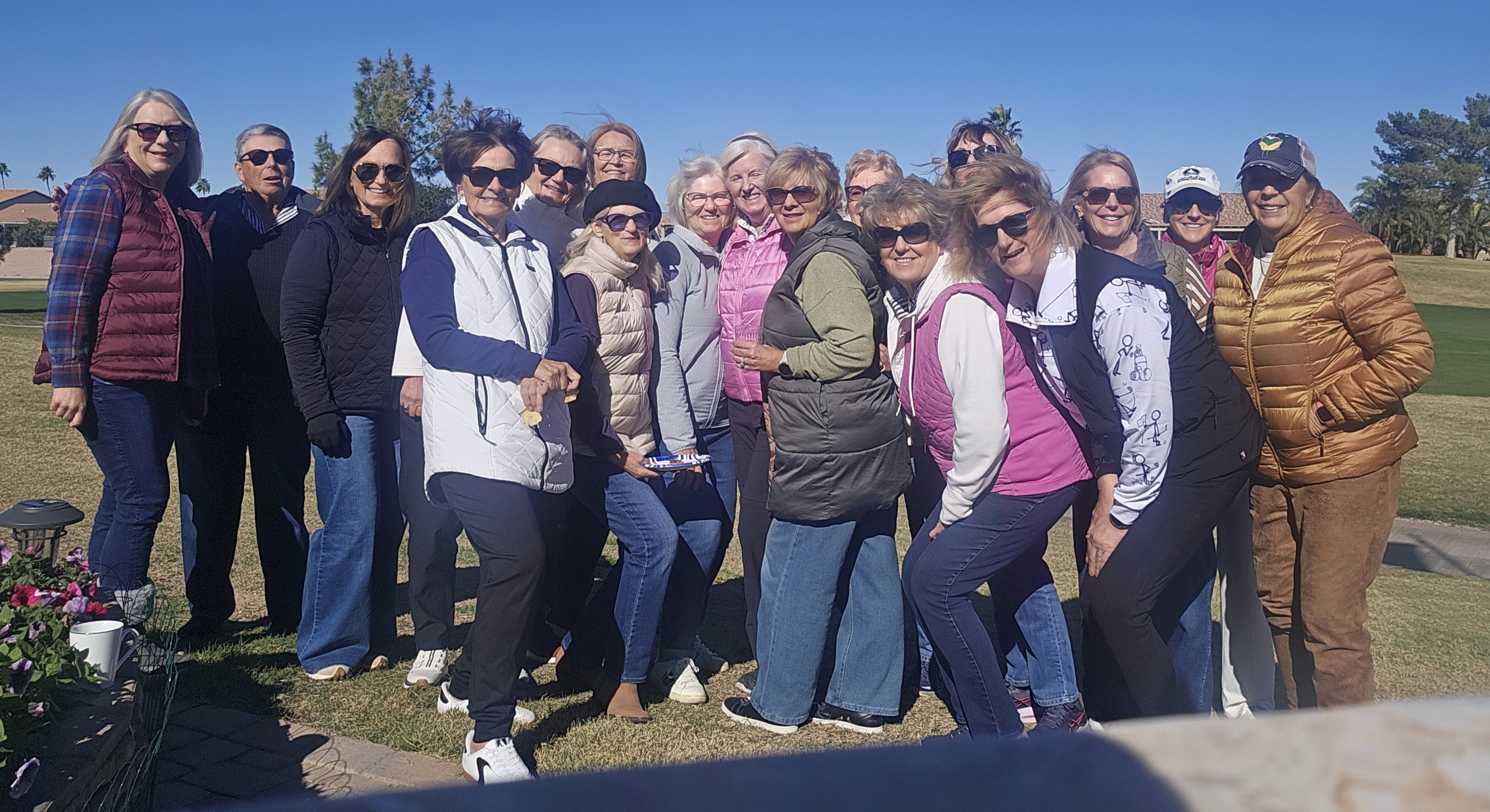 Our golf buddies get together monthly during the year and especially in the summer for Happy Hour. Not everybody golfs in the heat, but everybody is ready to raise a glass with good friends.